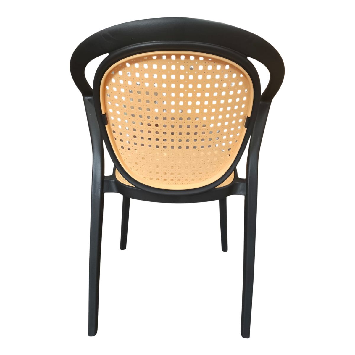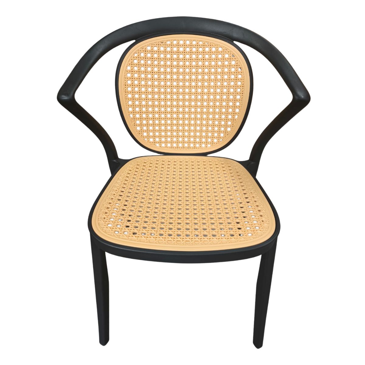 Ideal para terrazas, comedores, cafés o espacios coworking, esta silla está fabricada en polipropileno de alta resistencia con tratamiento anti-UV, lo que garantiza durabilidad frente al sol y uso intensivo. El respaldo y asiento en ratán sintético aportan frescura y un toque artesanal que enamora.