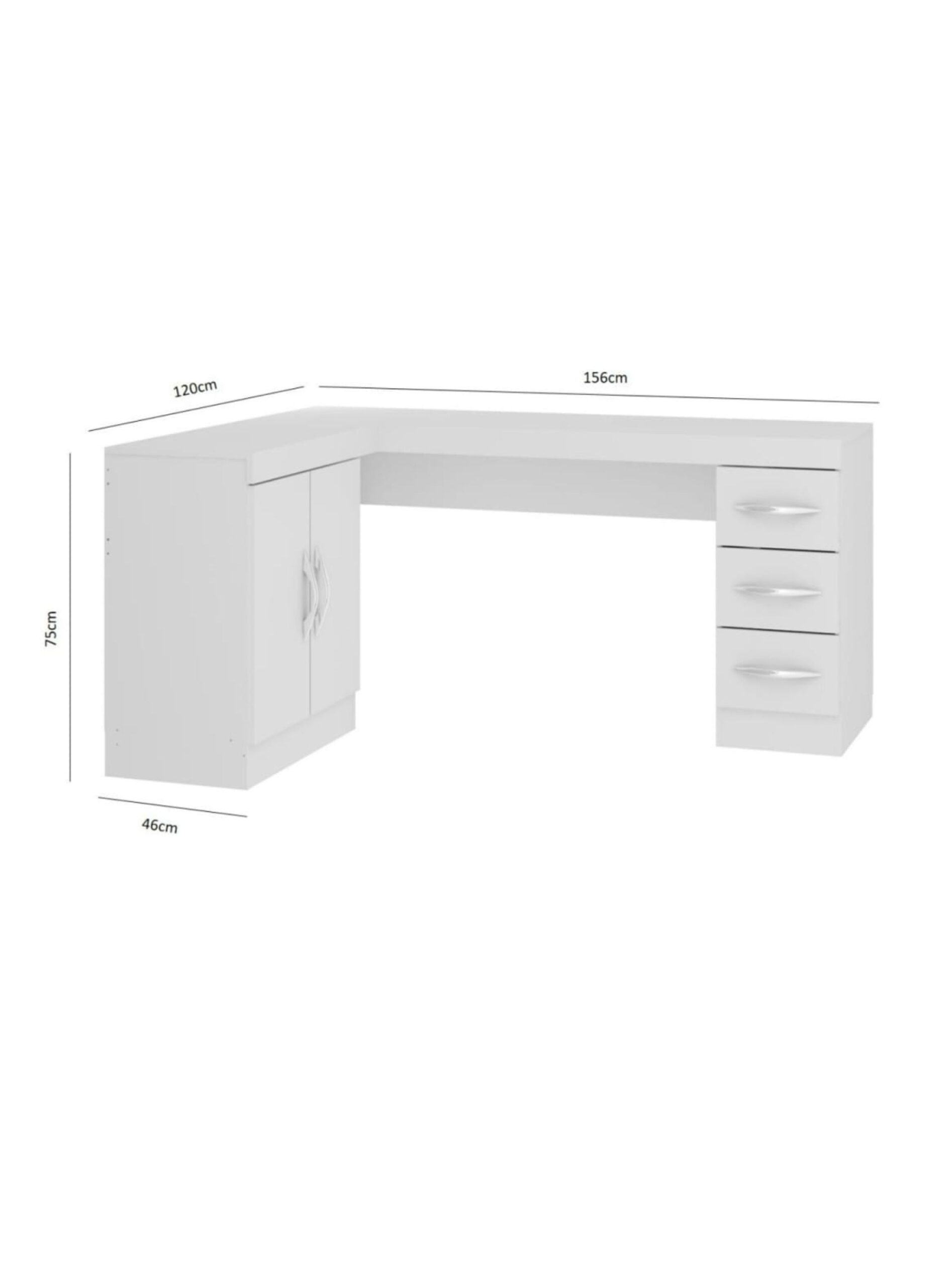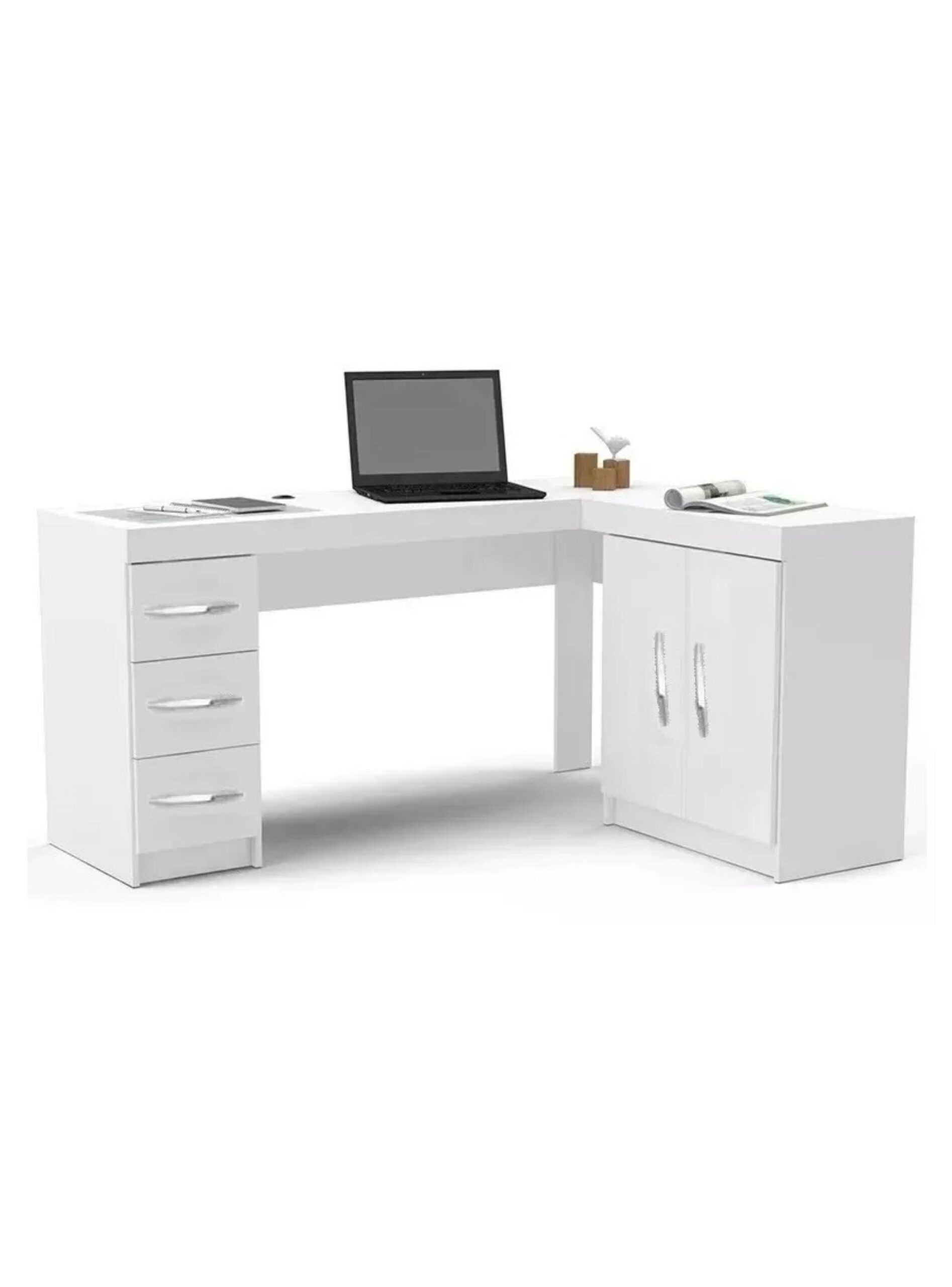 El escritorio en «L» tiene 3 cajones y 1 nicho con 2 puertas, perfecto para ser utilizado en el hogar u oficina, dando un toque especial en cada espacio. Sus compartimientos también le permiten almacenar artículos personales de una manera más reservada y organizada. Producto elaborado en excelente material de MDP de 15 mm en un acabado de pintura UV, manijas de plástico, bisagras y correderas metálicas, lo que garantiza una mayor resistencia y calidad en su mueble. Armado tanto derecha como izquierda.