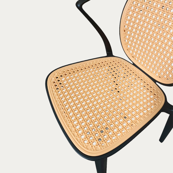 Ideal para terrazas, comedores, cafés o espacios coworking, esta silla está fabricada en polipropileno de alta resistencia con tratamiento anti-UV, lo que garantiza durabilidad frente al sol y uso intensivo. El respaldo y asiento en ratán sintético aportan frescura y un toque artesanal que enamora.