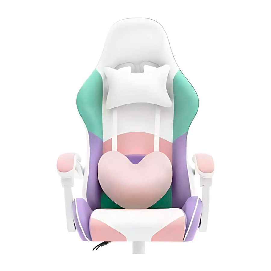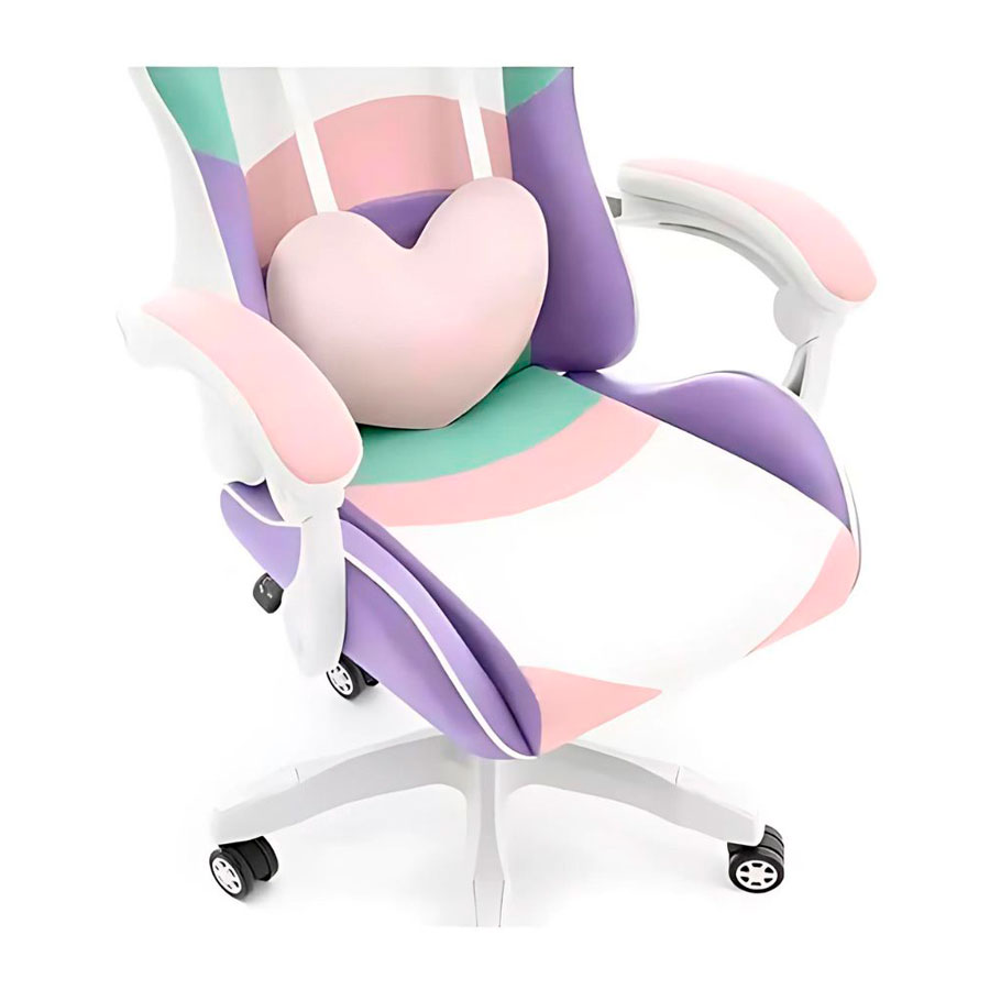 El asiento está tapizado en PVC sintético resistente al desgaste y relleno de espuma de alta calidad, es ergonómico, por lo que no experimentará dolor de espalda ni fatiga, además cuenta con reposacabezas acolchado y soporte lumbar regulable en forma de corazón para que pueda descansar durante sus actividades. Tiene una inclinación de hasta 150 grados.